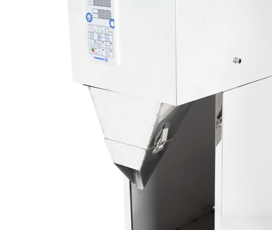Весовой дозатор Foodatlas FA-1000V используется на предприятиях пищевой промышленности, общественного питания и торговли для дозирования сыпучих, гранулированных продуктов некрупной фракции. Дозатор оснащен электронной панелью управления и загрузочным бункером, из которого продукт, путем вибрации перемещается в камеру взвешивания.