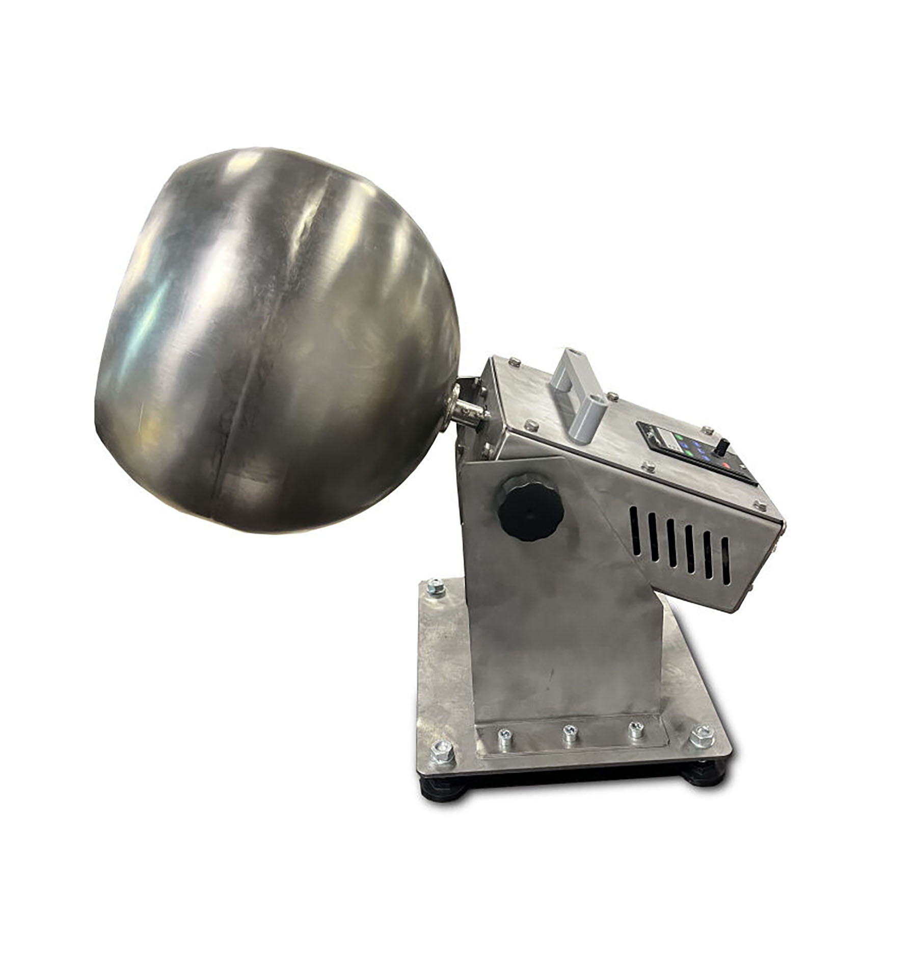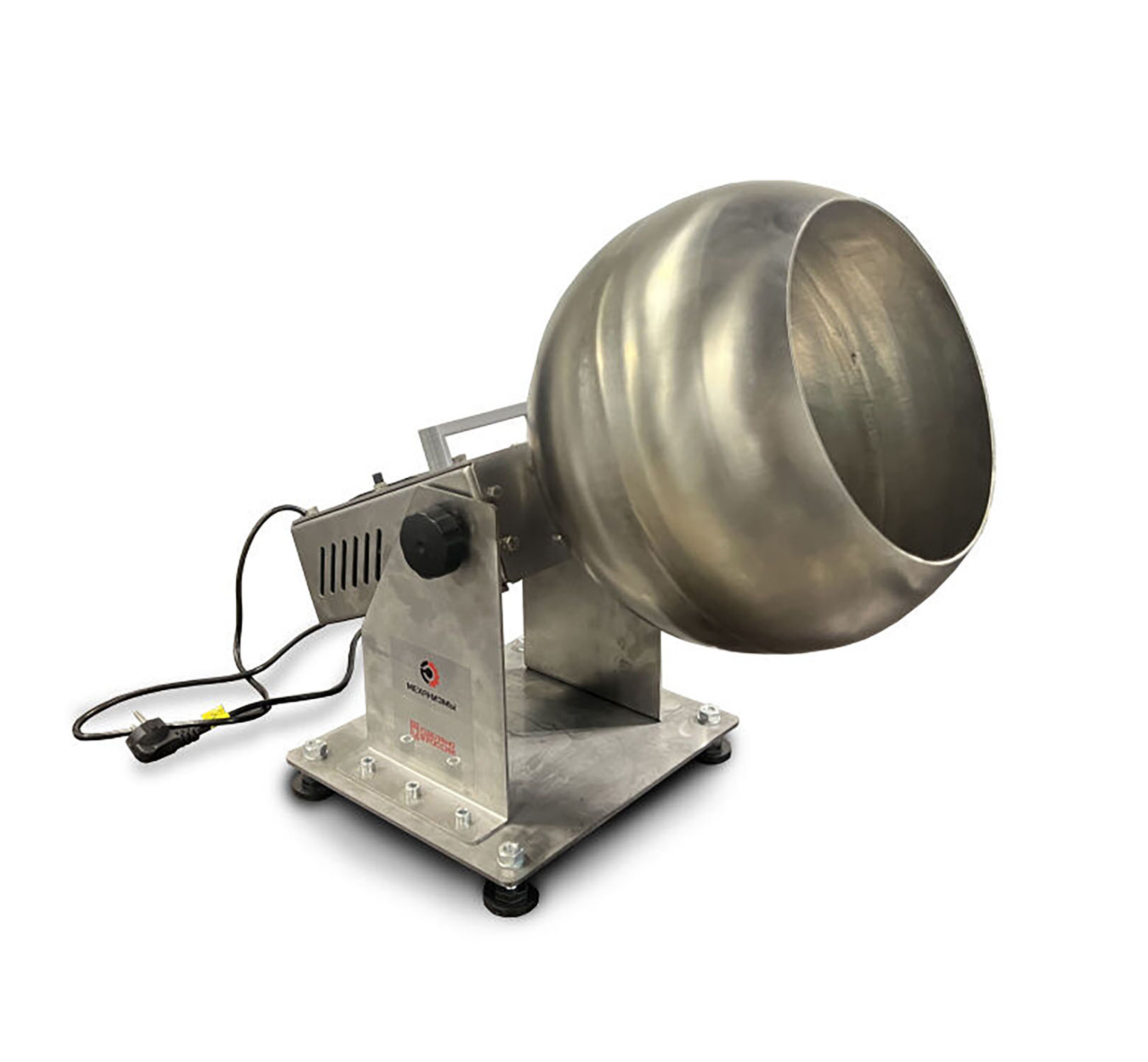 Барабан дражировочный лабораторный ДРБ-Л МЕХАНИЗМЫ предназначен для покрытия (обволакивания) глянцевой оболочкой различных изделий: орехи, сухофрукты, цукаты, кондитерские изделия, зерна кофе и т.п. В качестве оболочки используются сахар, все виды глазури, помадные массы, витаминно-фруктовые смеси, и тп. Комплектуется системой обдува для возможности реализации различных технологических процессов нанесения составов. Применяется в пищевой (сахарная, шоколадная глазурь для орехов, фруктов, попкорна, конфет, жевательных резинок и т.д.) и фармацевтической (оболочка для таблеток) промышленности.