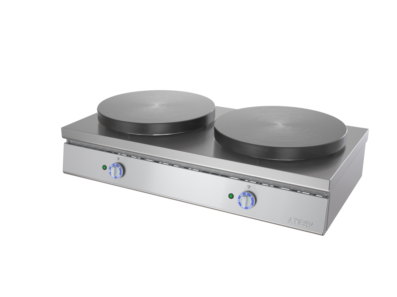 Блинница Масленица БА-2-400-02 ATESY используется на предприятиях общественного питания и торговли для выпекания традиционных русских блинов круглой формы. Модель оснащена 2-мя ручками терморегуляторов, позволяющими осуществлять регулировку температуры жарочных поверхностей. Корпус выполнен из нержавеющей стали, жарочные поверхности - из жаропрочного чугуна.