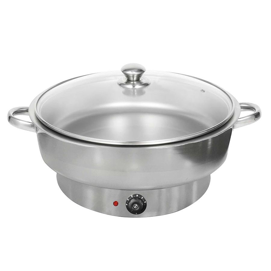 Чафинг-диш VIATTO VA-ECD07 предназначен для поддержания в горячем состоянии широкого спектра блюд на предприятиях общественного питания и торговли. Модель оснащена 1 круглой емкостью со съемной стеклянной крышкой и терморегулятором. Корпус и емкость выполнены из нержавеющей стали.