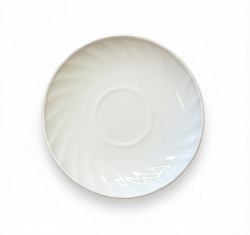 Поверхность посуды: гладкая, борт тарелок выполнен в виде рельефа однородная волна