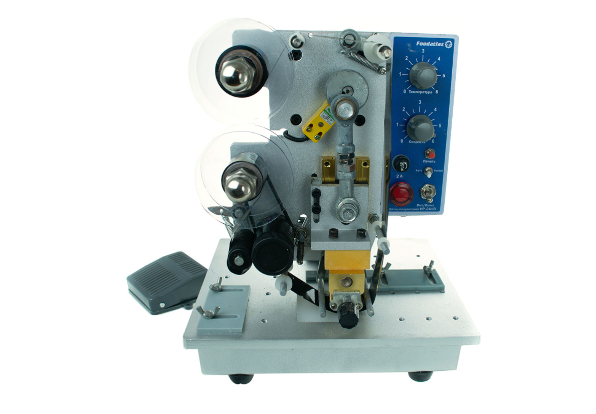 Полуавтоматический датер Foodatlas HP-241B Pro используется на предприятиях общественного питания и торговли для нанесения чернильной печати на полиэтилен, алюминиевую бумагу, выделанную кожу и другие упаковочные материалы. Датер позволяет проставить дату производства, срок хранения, номер партии, вес, цену и прочие показатели.