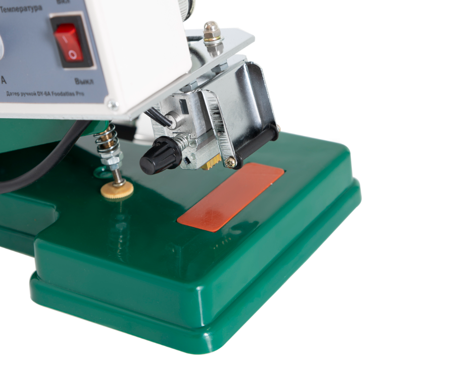Ручной датер Foodatlas DY-6A Pro используется на предприятиях общественного питания и торговли для нанесения чернильной печати на полиэтилен, алюминиевую бумагу, выделанную кожу и другие упаковочные материалы. Датер оснащен регулировкой температуры. Аппарат позволяет проставить дату производства, срок хранения, номер партии, вес, цену и прочие показатели.