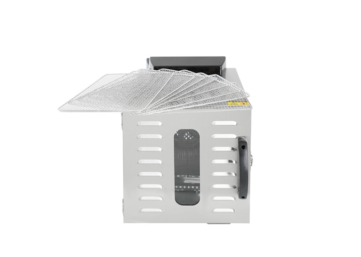 Дегидратор Foodatlas FA-8 используется на предприятиях общественного питания и торговли для сушки овощей, фруктов, ягод, грибов. Дегидратор оснащен электронной панелью управления, терморегулятором, дверцей с замком, эргономичной ручкой, нескользящими ножками и смотровым окном, позволяющим контролировать рабочий процесс. Корпус и решетки выполнены из нержавеющей стали.