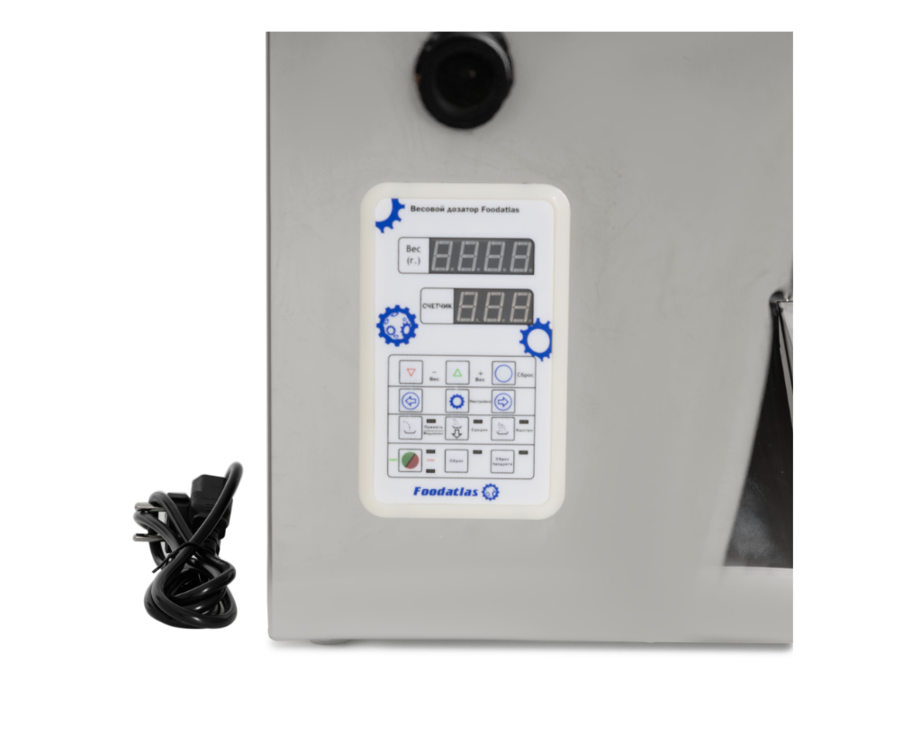 Весовой дозатор Foodatlas FA-500V используется на предприятиях пищевой промышленности, общественного питания и торговли для дозирования сыпучих, гранулированных продуктов некрупной фракции. Дозатор оснащен электронной панелью управления и загрузочным бункером, из которого продукт, путем вибрации перемещается в камеру взвешивания.