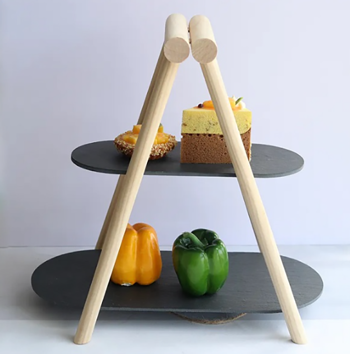 Этажерка 2-х ярусная 31х13,5/41х18,5 см, овальная с деревянной ножкой черная, сланец MGprof