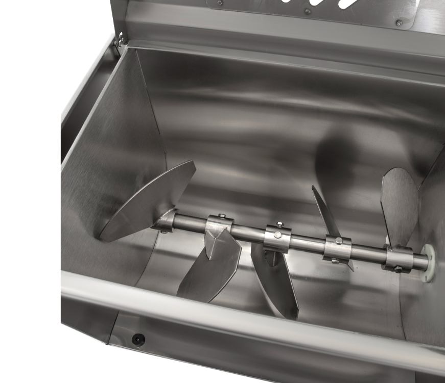 Фаршемешалка YBX-100 Foodatlas предназначена для перемешивания мясного, рыбного или овощного фарша, творожных масс, а также различных измельченных пищевых продуктов в условиях вакуума. Детали машины, контактирующие с пищевыми продуктами, изготовлены из нержавеющей стали.