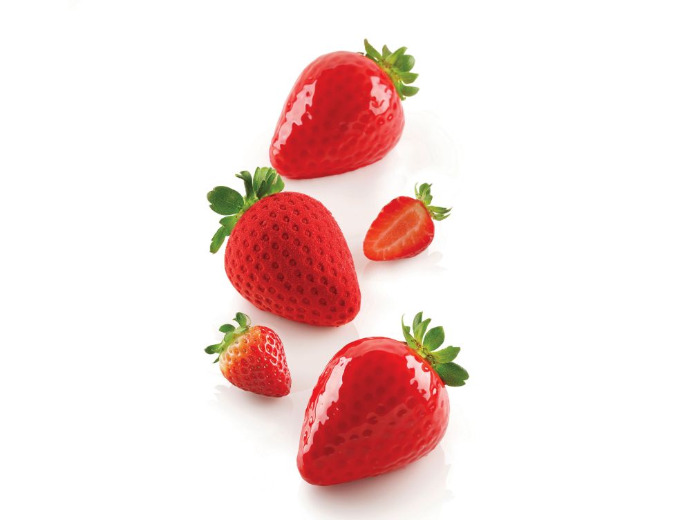 Форма для выпечки 120 мл 5 ячеек 60х77х54 мм Клубника силикон, пластиковая подставка SILIKOMART