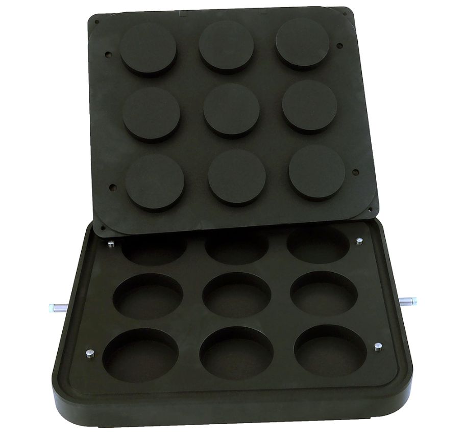 Форма для круглых тарталеток DH Tartmatic Plate 40 KOCATEQ используется совместно с тарталетницей DHTartmatic на предприятиях общественного питания и торговли, в пекарнях и кондитерских для выпечки тарталеток. Форма представляет собой 2 пластины, одна из которых с выемками крепится к неподвижной станине тарталетницы, другая с выпуклостями к верхней подвижной части. Модель оснащена 9 круглыми формами. Антипригарное покрытие пластин выполнено из теплопроводящего сплава.
