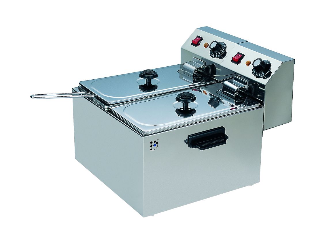 Фритюрница CZG-40-2 GASTRORAG предназначена для приготовления различных продуктов в большом количестве масла на предприятиях общественного питания и торговли. Модель оснащена съемными блоками управления с ТЭНами и котлами для быстрой и удобной очистки оборудования и термоизолированными ручками. Корпус выполнен из нержавеющей стали.