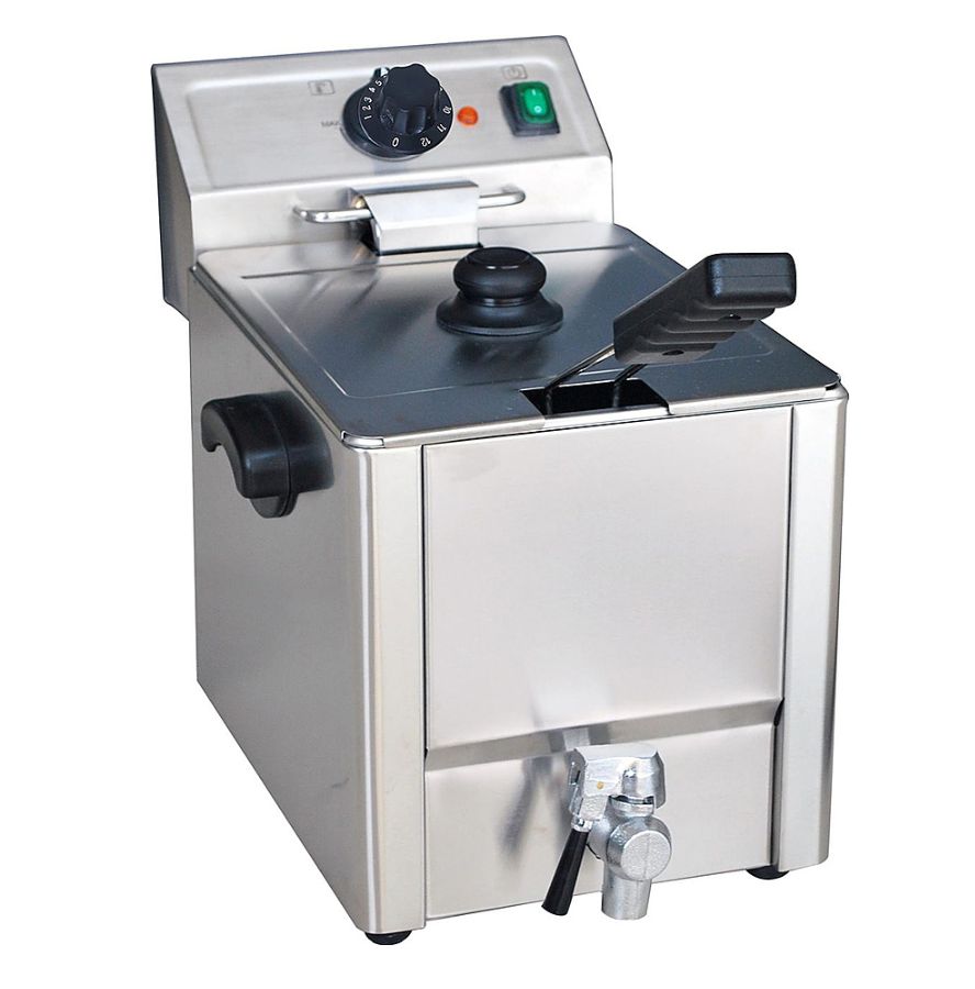 - Электромеханическая панель с ручкой регулировки температуры (в наличии режим для растапливания твердого фритюра), кнопка питания и световой индикатор