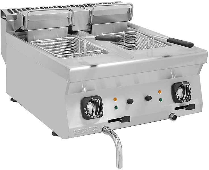 - Фритюрница электрическая настольная, 2 ванны, объем масла 12+12 л, модуль кухонной линии 700.