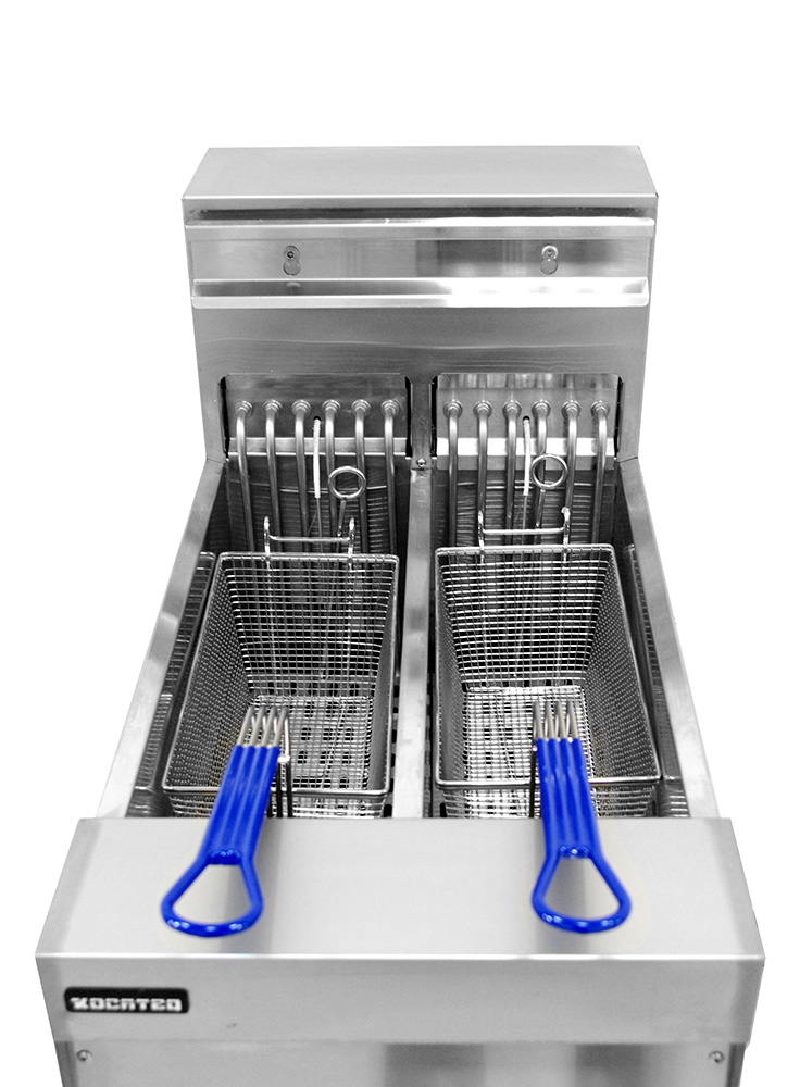 Фритюрница электрическая напольная EF16-2 KOCATEQ используется для обжаривания куриных крылышек, картошки-фри и других овощей во фритюре до румяной корочки на предприятиях общепита. Корпус выполнен из нержавеющей стали AISI 304. Фритюрница оборудована электронной панелью управления с 12 предустановленными программами. Имеет ТЭНы большой длины для снижения удельного тепловыделения до рекордно низких величин. Система защиты отключает нагрев ТЭНов, находящихся в поднятом состоянии, при отсутствии фритюра.
