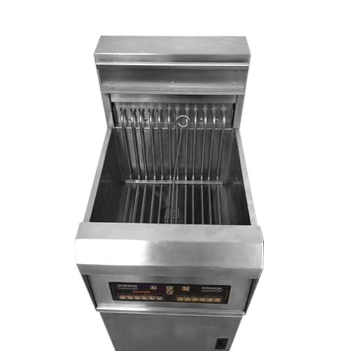 Фритюрница электрическая напольная EF32-1 KOCATEQ используется для обжаривания куриных крылышек, картошки-фри и других овощей во фритюре до румяной корочки на предприятиях общепита. Корпус выполнен из нержавеющей стали AISI 304. Фритюрница оборудована электронной панелью управления с 12 предустановленными программами. Имеет ТЭНы большой длины для снижения удельного тепловыделения до рекордно низких величин. Система защиты отключает нагрев ТЭНов, находящихся в поднятом состоянии, при отсутствии фритюра.
