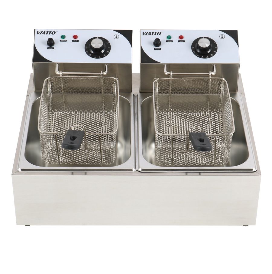 Фритюрница VIATTO VA-EF062 предназначена для приготовления различных продуктов в большом количестве горячего жира или масла на предприятиях общественного питания и торговли. Модель оснащена независимой регулировкой температуры в каждой ванне и защитой от перегрева. Корпус выполнен из нержавеющей стали.