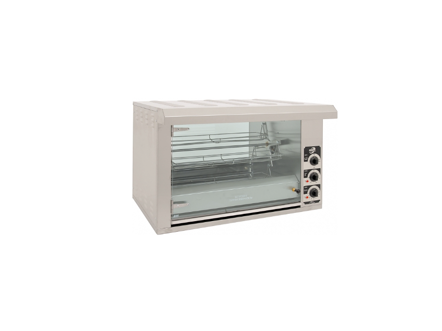 Гриль для кур Sikom МК-8.12 предназначен для приготовления кур-гриль в заведениях быстрого питания, супермаркетах и уличной торговли. Оснащен электромеханической панелью управления и таймером. Корпус выполнен из нержавеющей стали, дверь и задняя стенка - из жаропрочного стекла.