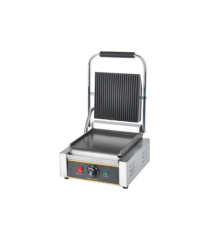 Гриль пресс односекционный GH811CNW KOCATEQ предназначен для жарки мяса, птицы, рыбы и овощей, приготовления стейков, гамбургеров и горячих сэндвичей на предприятиях общественного питания и торговли. Гриль оснащена механической панелью управления и термостатом для регулировки температуры. Рабочие поверхности выполнены из литой стали с антипригарным покрытием, корпус из нержавеющей стали AISI 430 толщиной 0,8 мм, ножки из пластика.