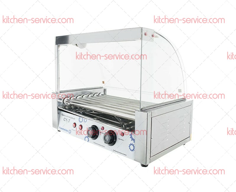 Роликовый гриль Foodatlas CY-7 предназначен для быстрого равномерного обжаривания сосисок, сарделек и колбасок на предприятиях общественного питания и торговли. Гриль оснащен 2 терморегуляторами, 7 ТЭНами и подсветкой. Корпус, ролики и поддон выполнены из нержавеющей стали.