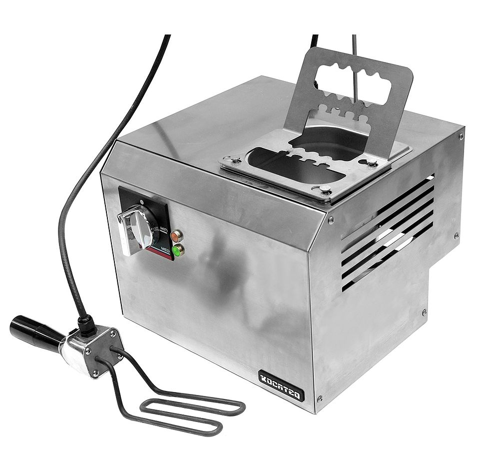 Клише электрическое для имитации прожарки на гриле GS1 KOCATEQ предназначен для придания продуктам приготовленных по технологи Sous vide вида и вкуса продуктов, приготовленных на угольном гриль-мангале, на предприятиях общественного питания и торговли. Корпус выполнен из нержавеющей стали, ТЭН из нержавеющей стали AISI 316.
