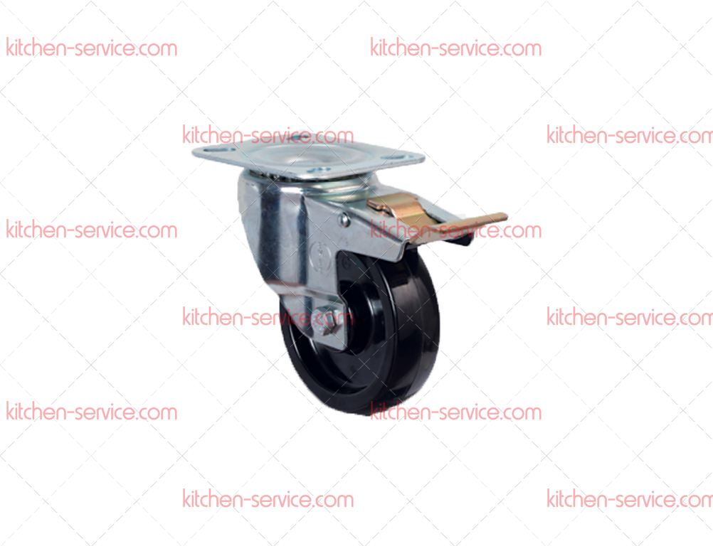 Колесо 100 мм термостойкое фенольное поворотное с тормозом (EM 01 BKB 100 F)