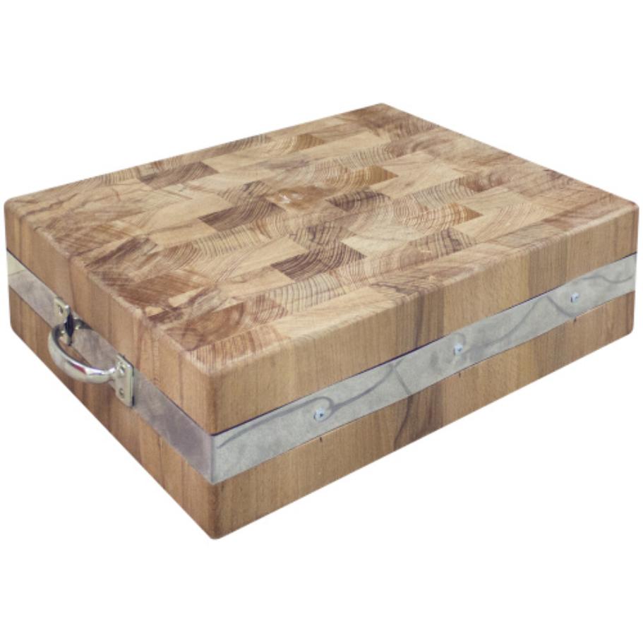 Настольная разрубочная колода ПищТех 500х400х150 мм используется на предприятиях общественного питания и торговли для обработки мясного сырья и заготовки кулинарии: нарезки антрекотов, шницелей и других полуфабрикатов. Данная модель оснащена рукояткой для удобства транспортировки. Корпус выполнен из промасленного бука.