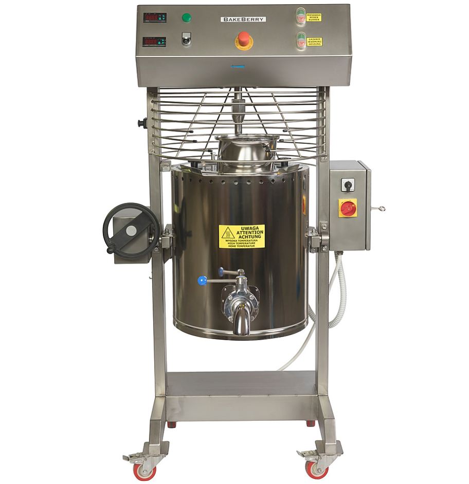 Кремоварка опрокидываемая цилиндрическая KVR-120 BAKEBERRY используется на предприятиях общественного питания и торговли для приготовления заварного крема, кондитерской массы, джема, фруктового пашота, смесей для мороженого, шоколадных десертов. Оснащена скребками для предотвращения прилипания и пригорания продуктов.