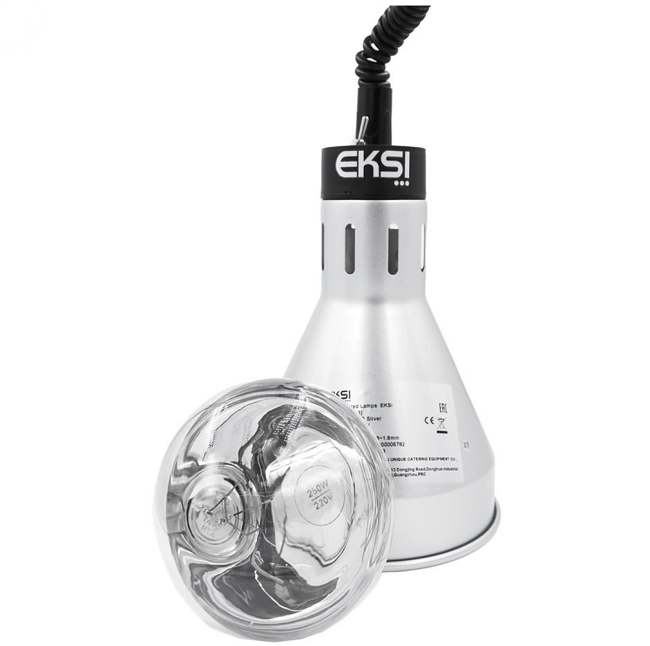 Лампа для подогрева EKSI EL-500-R предназначена для поддержания блюд в теплом состоянии на предприятиях общественного питания и торговли. Модель оснащена механизмом регулировки и фиксации по высоте и расположенным сверху выключателем. Корпус выполнен из крашеного металла.