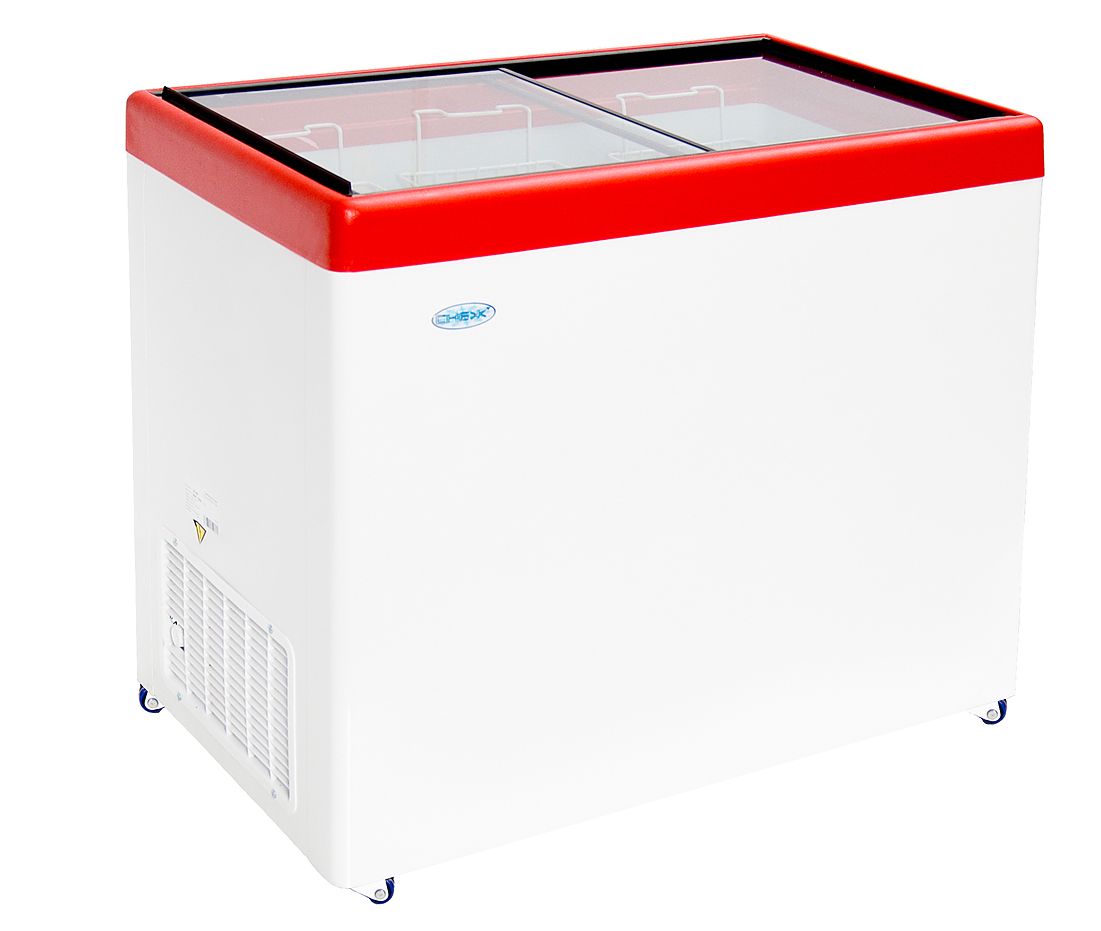 Ларь морозильный с прямым стеклом МЛП-350 (красный) СНЕЖ