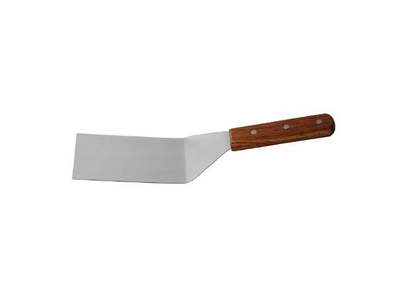 Лопатка 30,5 см, изогнутая, нержавеющая сталь с деревянной ручкой MGSTEEL. С ее помощью можно переворачивать, распределять, перемещать и совершать множество других разнообразных действий. Ручка-держатель защищена другим материалом (дерево) с меньшей теплопроводностью, т.к металл имеет склонность к нагреванию. Рабочая часть металлической лопатки довольно жесткая, поэтому не подходит к посуде с антипригарным покрытием.