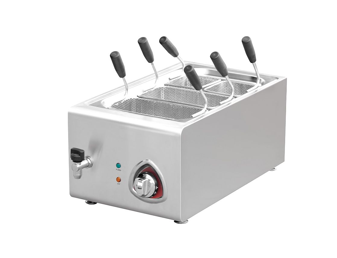 Макароноварка настольная 4CP KOCATEQ класса Medium-Duty используется на предприятиях общественного питания и торговли для отваривания и размораживания кукурузы, фрикаделек, макаронных изделий, пельменей, вареников, овощей, фруктов и прочих продуктов. Макароноварка оснащена механическим термостатом для регулировки температуры и защитным термостатом. Ванна выполнена из специальной стали толщиной 1,5 мм, декоративные ручки с накладками из нержавеющей стали, поверхности, соприкасающиеся с продуктами, выполнены из нержавеющей стали AISI 304 толщиной 1 мм, дно и задняя стенка из нержавеющей стали AISI 201 толщиной 1 мм.