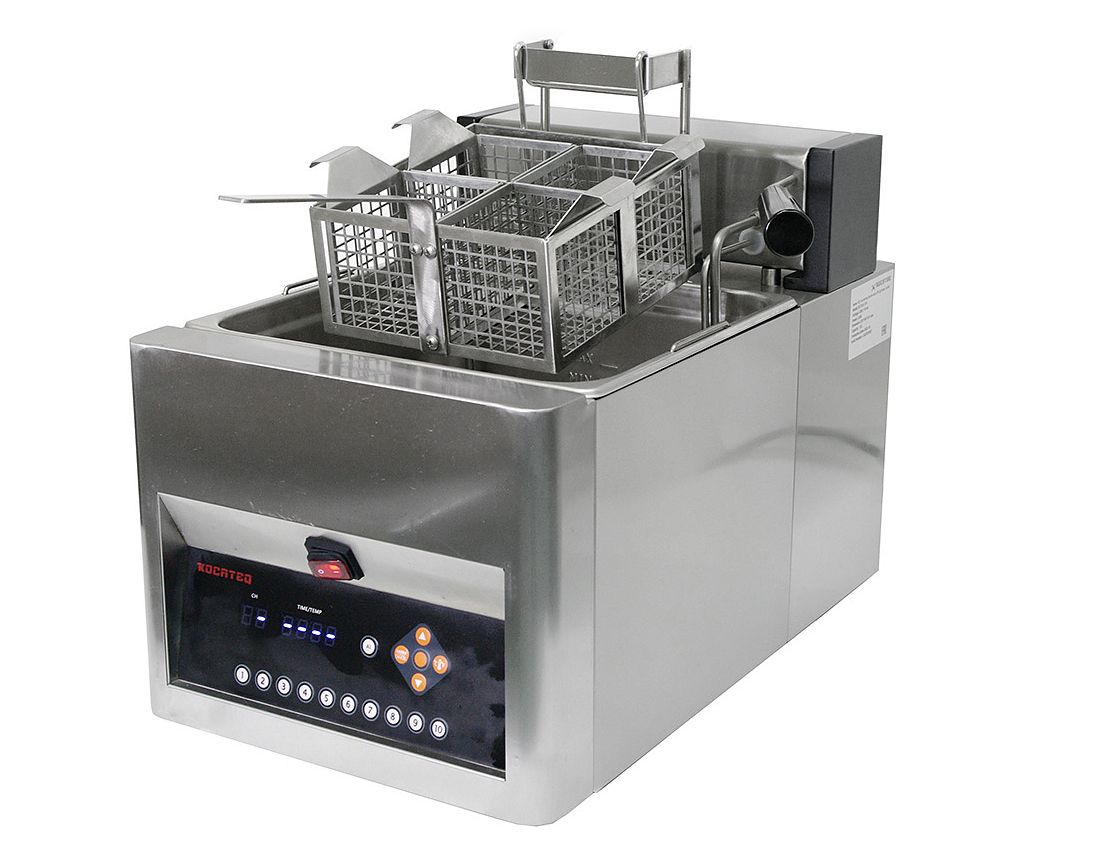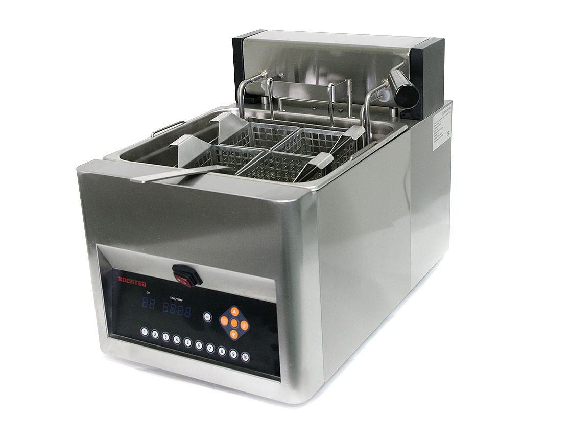 - Автоматическое опускание корзин при закипании воды и подъем корзин по окончании цикла приготовления