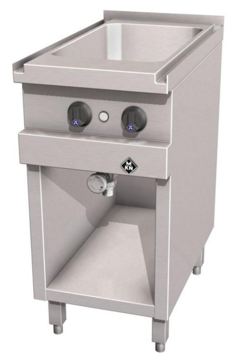 Мармит электрический 1x1/1 GN высота 200 мм Optima 700 MKN имеет сварную бесшовную верхняя поверхность с ванной из штампованной стали с крупными закруглёнными углами. Ванна размерами 305x510 мм на гастроёмкость 1x1/1 не глубже 200 мм. Главный выключатель, термостат, контрольный индикатор, тэны, подключение к сети. Термостатический регулятор температуры. Предусмотрено подключение к системе оптимизации электропитания с беспотенциальным контактом.