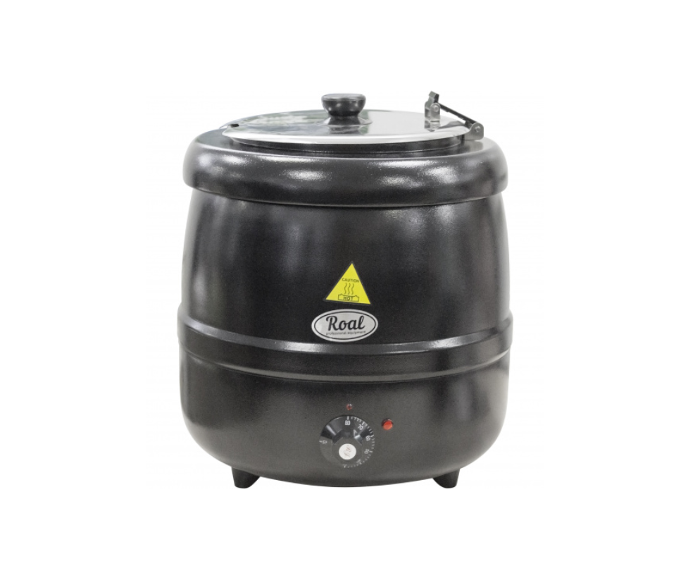 Мармит RT-L10 ROAL предназначен для поддержания в горячем виде и раздачи первых блюд на предприятиях общественного питания и торговли. Оборудование позволяет избежать остывания и последующего подогрева блюд. Мармит оснащен откидной съемной крышкой с фланцем. Корпус выполнен из эмалированной стали, емкость для воды - из алюминия, суповая емкость - из стали SUS 201.