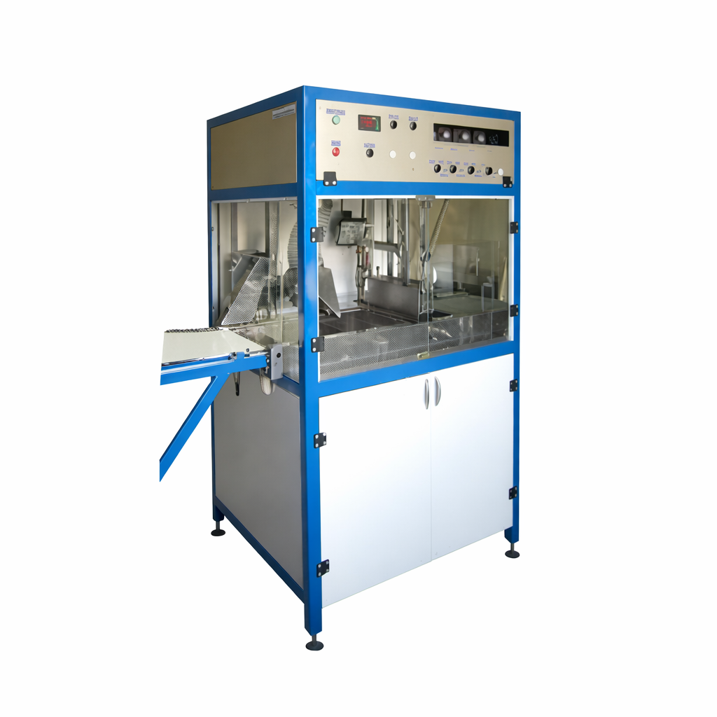 Машина шоколадно-глазировочная МГ-800 (с лопастным насосом) FOODATLAS - профессиональное оборудование, предназначенное для механизации процесса глазировки шоколадом кондитерских изделий на различных предприятиях пищевой промышленности. Декорирование кондитерских изделий глазурью при помощи данного оборудования может осуществляться как сверху и снизу, так и абсолютно всех сторон.