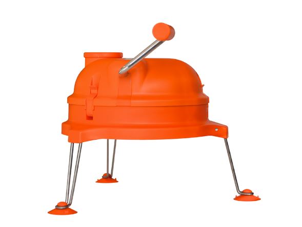 Продукты (овощи, фрукты, сыры, вареное мясо, помидоры) режутся аккуратно. Овощи и фрукты помещаются внутрь овощерезки и слегка придавливаются специальным толкателем, после чего оператор начинает вращать боковую ручку. Нарезанные продукты выходят из отверстия, расположенного с обратной стороны устройства. Прибор оснащен 3-мя металлическими ножками с антискользящими накладками. Корпус овощерезки выполнен из высококачественного полипропилена. Простая и быстрая чистка прибора, дисков или сеток ножа. Dynacube оснащена системой фиксации в виде присосок.