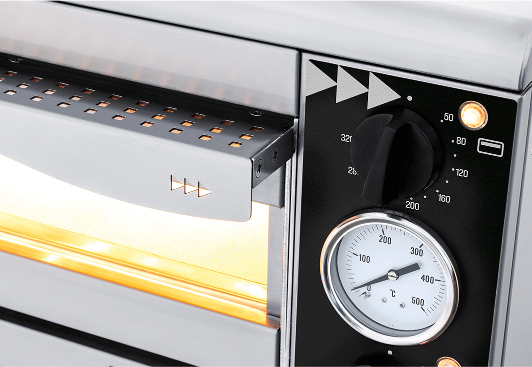 Печь для пиццы GLASS & LIGHT HIDEO 2/40 PRISMAFOOD идеально подходит для баров и ресторанов, которым требуется современное оборудование с ультрамодной эстетикой, простое в использовании и гарантирующее быстрое и точное время выпечки, не занимая слишком много места. Модель оснащена 2 камерами, расположенной с правой стороны фронта электромеханической панелью управления, каждая камера имеет верхний и нижний трубчатые электронагреватели (ТЭНы) и откидную дверь с длинной горизонтальной рукояткой. Фронт и внутренняя облицовка камер выполнены из высококачественной нержавеющей стали, прочие панели корпуса – из окрашенной стали