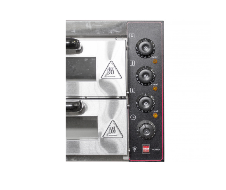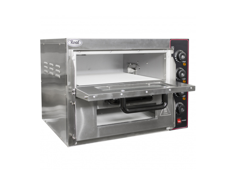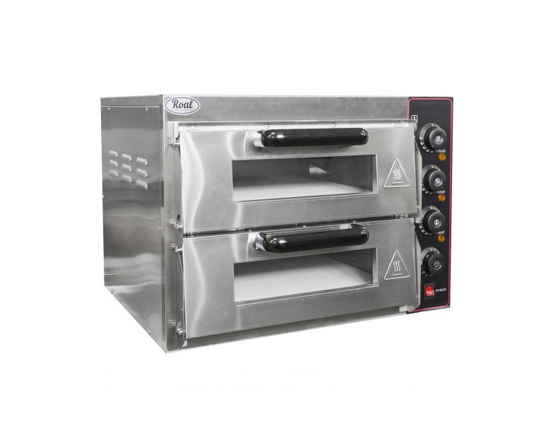 Печь для пиццы ROAL SZ-EP2 используется на предприятиях общественного питания и торговли для выпечки пиццы и хлебобулочных изделий. Печь оснащена дверцей со смотровым стеклом и термостами для управления.