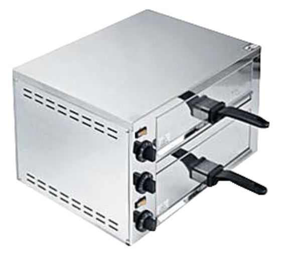 Печь статическая EPC 02 ECO KOCATEQ используется на предприятиях общественного питания и торговли, в пекарнях и кондитерских для выпечки пиццы, вафель, горячих сэндвичей и хлебобулочных изделий, а также разогрева полуфабрикатов. Печь оснащена таймером до 15 минут со звуковым сигналом, механическим термостатом для регулировки температуры и защитным термостатом, автоматически отключающим напряжение при повреждении основного термостата. Верх камеры и корпус выполнены из нержавеющей стали AISI 201, 2 решетки-противни из хромированной стали, выдвижной лоток для сбора крошек из нержавеющей стали, ножки из термостойкой резины.