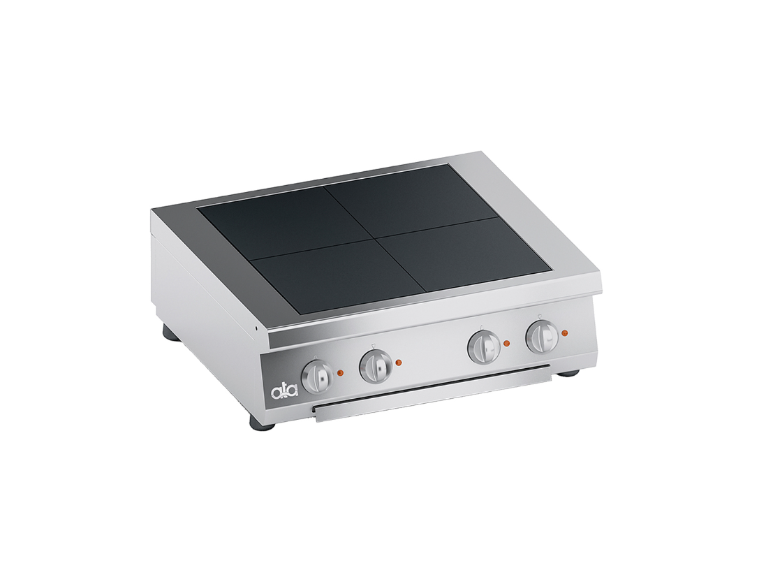 Плита электрическая 4-х конфорочная K7ERU10TT ATA предназначена для приготовления блюд в наплитной посуде на предприятиях общественного питания и торговли. Оснащена температурными датчиками внутри конфорок, обеспечивающими безопасность работы и поддоном для сбора жидкости. Корпус выполнен из нержавеющей стали, рабочая поверхность и передняя панель - из нержавеющей стали AISI 304, атермические ручки - из пластика с трафаретной печатью по краям, квадратные конфорки - из чугуна.