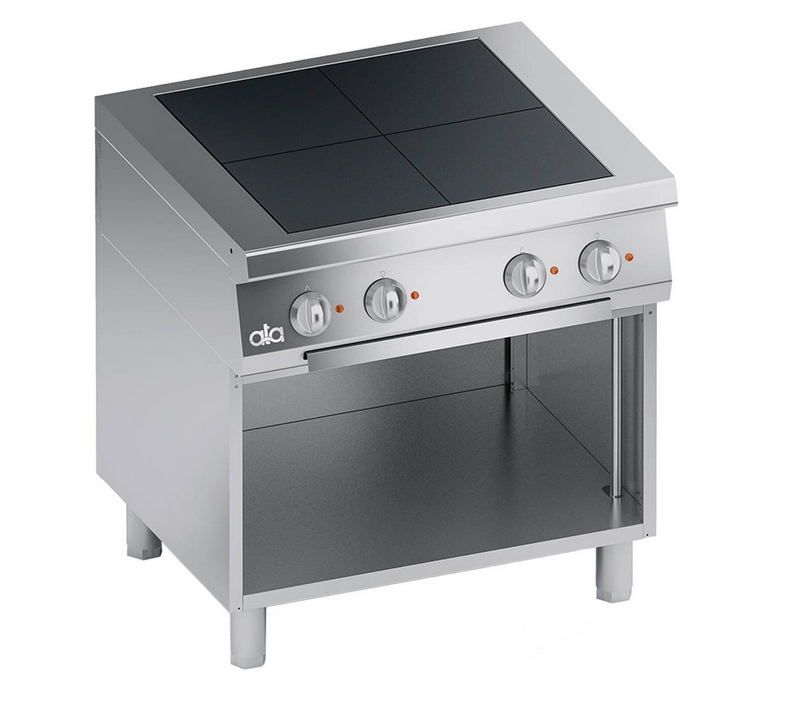 Электрическая плита АТА ELECTRIC RANGE 4 HOTPLATES + CABINET предназначена для приготовления блюд в наплитной посуде на предприятиях общественного питания и торговли. Модель оснащена температурным датчиком. Корпус изготовлен из нержавеющей стали, атермические ручки - из пластика, квадратные конфорки - из чугуна, регулируемые ножки - из нержавеющей стали.