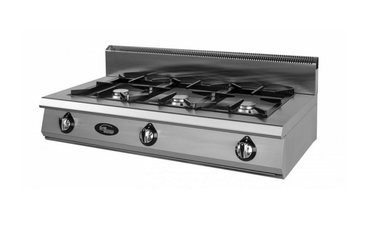 - Плита имеет 3 профессиональные горелки класса Heavy Duty