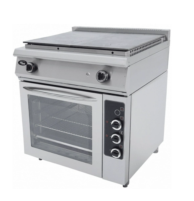 Плита газовая Ф5ЖТЛСПДГ (с духовкой) GRILL MASTER оснащена сверху ТЭНом мощностью 1,5 кВт и снизу горелкой 2,9 кВт, подсветкой и таймером. Плита полностью сделана из нержавеющей стали. Духовка вмещает 4 гастроемкости GN 2/1.