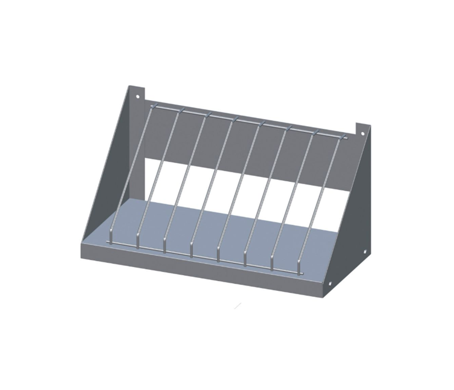 Полка кухонная для крышек ПКК-Н-ЮТ ТЕХНОЛОГИИ ЮГА предназначена для сушки и хранения разделочных досок и крышек на предприятиях общественного питания и торговли. Поддон, бока полки и задняя стенка выполнены из нержавеющей стали aisi 430, толщиной 0,8 мм. Перегородки - нержавеющий пруток aisi 304, диаметром 6 мм.