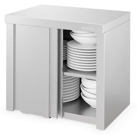 Кухонная полка ATESY ПЗК-С-1000.420.640-02-К серии Стандарт используется для хранения кухонного инвентаря, посуды и продуктов питания на предприятиях общественного питания и торговли. Полка выполнена из нержавеющей стали AISI 430, задняя стенка - из оцинкованной стали толщиной 1,2 мм, двери - из нержавеющей стали.