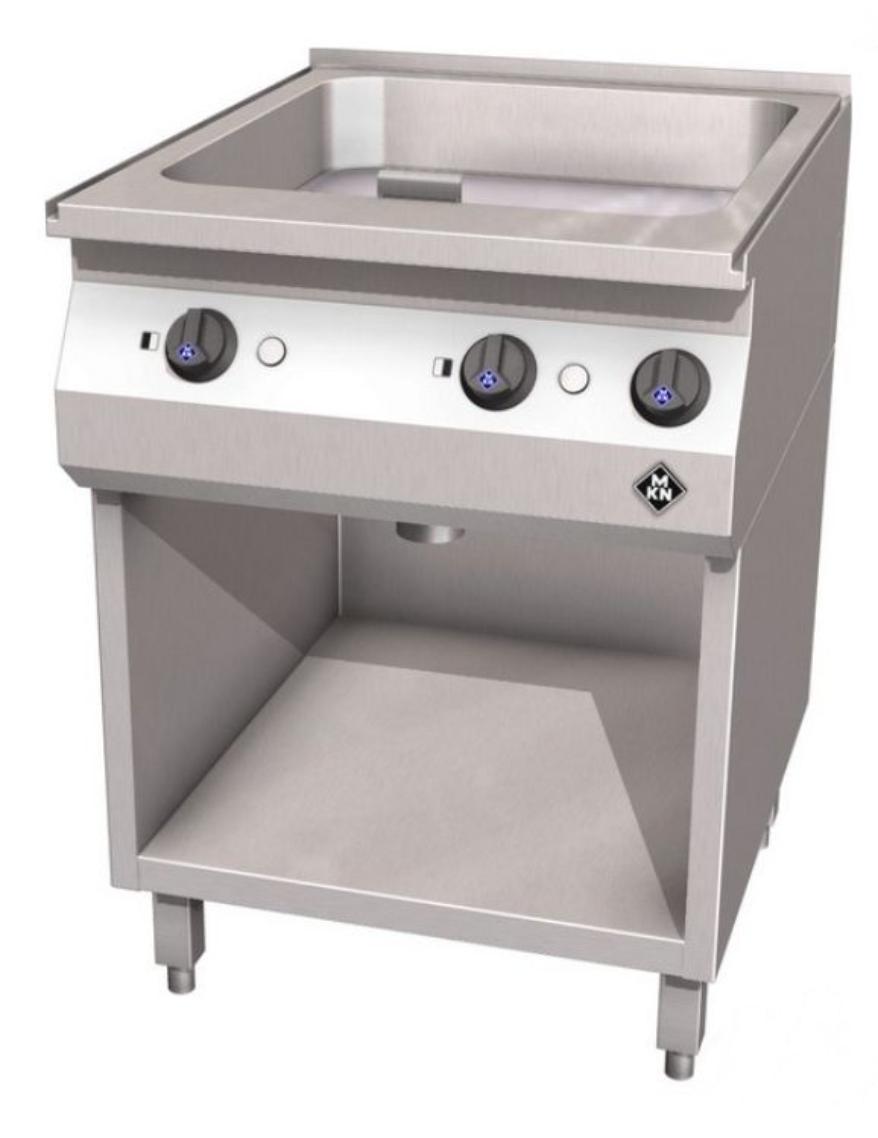 Поверхность жарочная электрическая гладкая на открытом шкафчике 1 SUPRA, 26 л, 7,2 кВт HotLine MKN это универсальное устройство для жарки, варки и тушения. Изготовлена полностью из хромоникелевой стали 1.4404 (AISI 316). Контактные нагревательные элементы Supra обеспечивают большую нагревательную способность и равномерное распределение тепла за короткий промежуток времени с минимальными температурными колебаниями, в случае загрузки холодных продуктов. Главный выключатель, термостат, контрольный индикатор, предохранительный термостат, контактные нагревательные элементы SUPRA, подключение к сети. Предусмотрен интерфейс для подключения к системе оптимизации электропитания с беспотенциальным контактом.