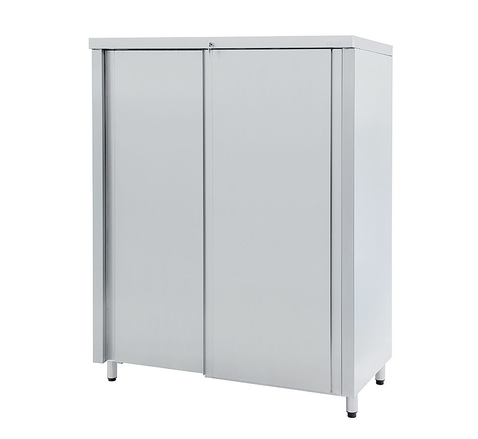 Шкаф закрытый кухонный ШЗК-С-950.600-02-К (ШЗК-950) ATESY предназначен для хранения продуктов питания, столовой и кухонной посуды и инвентаря на предприятиях общественного питания. Все элементы шкафа, кроме дна и задней стенки, изготовлены из нержавеющей стали AISI 430 толщиной 0,8 мм. Дно и задняя стенка изготовлены из оцинкованной стали. Внутри шкафа расположены две полки. Шкаф оснащен двумя дверями-купе с замком. Ножки шкафа изготовлены из нержавеющей стали, имеют пластиковую опорную часть и диапазон регулировки ±20 мм.