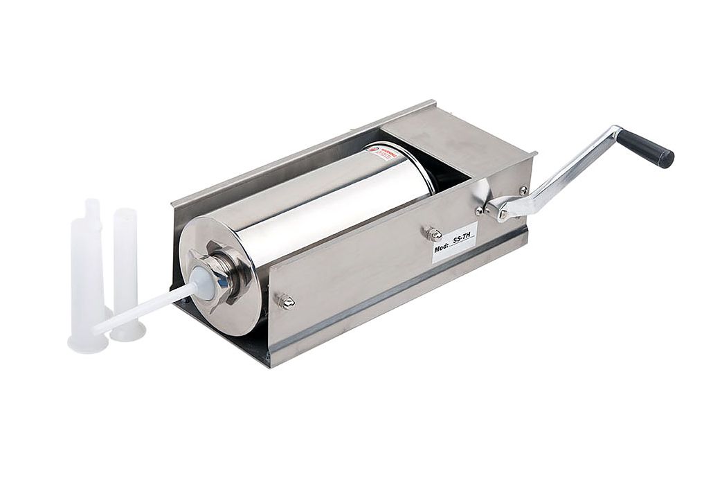 Шприц для колбас GASTRORAG SS-7H используется на предприятиях общественного питания и торговли для наполнения колбас, сосисок, сарделек и шпикачек. Модель оснащена ручным управлением и имеет горизонтальное исполнение. Корпус выполнен из нержавеющей стали.