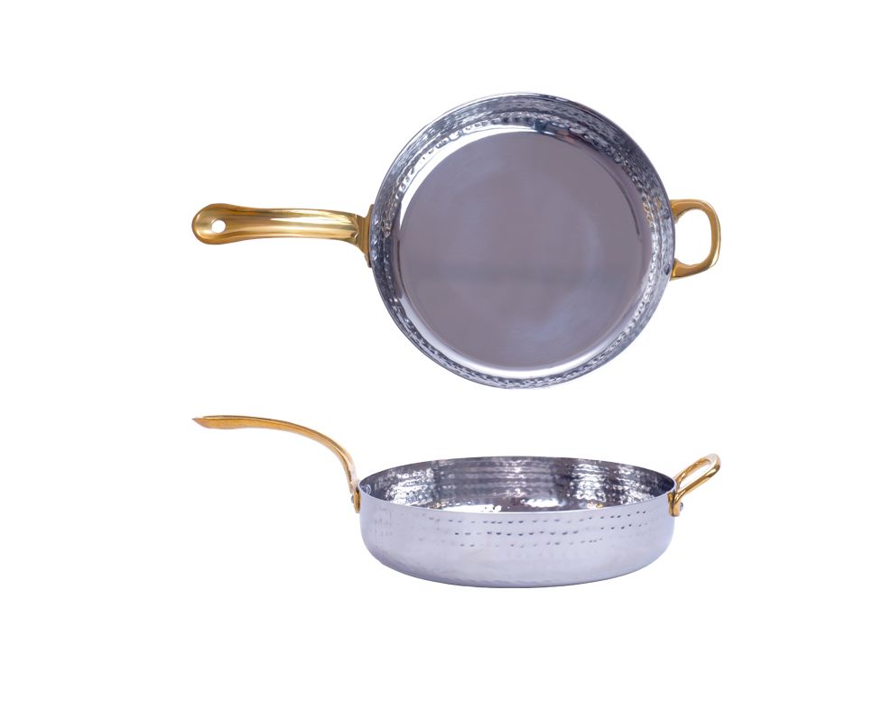 - Сковороды из нержавейки для подачи порционных блюд не боятся вилок и ножей, не впитывает масла и жиры
