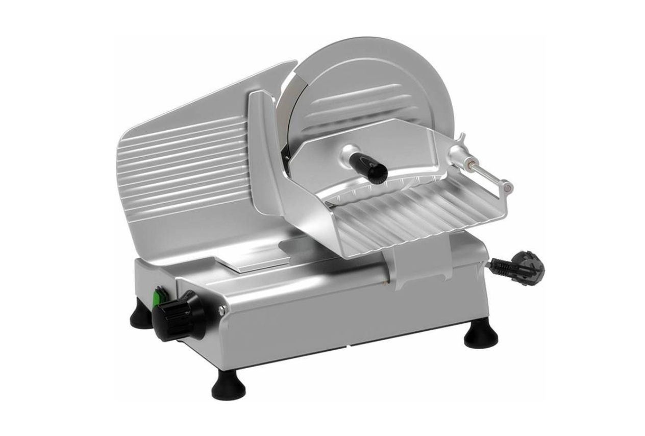 Слайсер VIATTO HBS-220B предназначен для нарезки тонкими одинаковыми ломтиками приготовленного мяса, колбасных изделий, сыра и овощей на предприятиях общественного питания. Модель оснащена съемным затачивающим устройством.