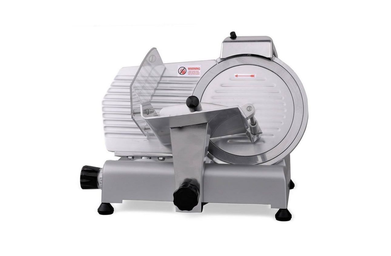 Слайсер VIATTO VA-MS250ST предназначен для нарезки тонкими одинаковыми ломтиками приготовленного мяса, колбасных изделий, сыра и овощей на предприятиях общественного питания и торговли. Модель оснащена фиксированным затачивающим устройством и плавным ходом.